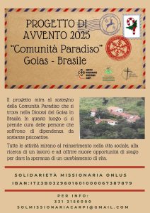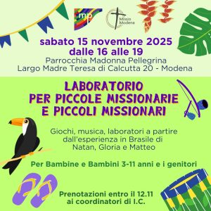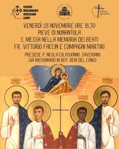IN PRIMO PIANO Video e progetto Avvento 2025 ALTRE NOTIZIE EL Mismo: primo incontro del 8 e 9 novembre Video e progetto Avvento 2025 Natale O’ clock !!! Lettera di don Luigi Gibellini dal Brasile Messa missionaria Dicembre 2025 Messa nel ricordo dei Beati Vittorio Faccin e compagni martiri Laboratorio per piccole missionarie e piccoli missionari Racconto dei campi estivi missionari in Malawi ed Ecuador Video e foto dalla messa missionaria di Novembre a Soliera Notizie Flash di Ottobre dalla Turchia ARCHIVIO NOTIZIEPROSSIMO EVENTO Messa missionaria Dicembre 2025 Agenda ufficio missionario festival della missioneVideo https://youtu.be/FCMdoW0jUuk ARCHIVIO VIDEO I PODCAST ElikyaElikya, la speranza del Vangelo senza confini, Pr Vincenzo Percassi, comboniano, Limone, 30 Novembre Unidos4.Domenica d'Avvento 2020 - 20 Dicembre 2020GALLERIA FOTOGRAFICA Perché ce l’ha data Diolettera di Debora dal Madagascar ARCHIVIO GALLERIE FOTOGRAFICHEAgenda Diocesana LITURGIA DEL GIORNO unidos_player banner festival_300x200 banner festival_320x213