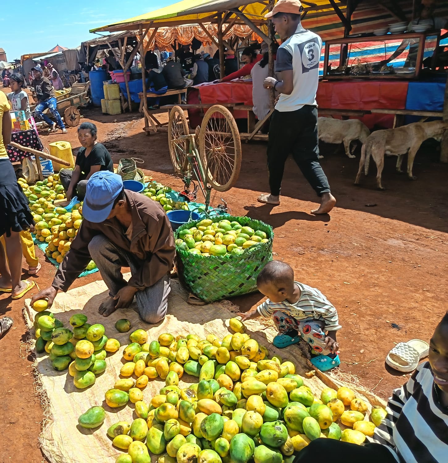 Ambohimandroso è un villaggio “vivo”, pieno di bellezza. Ovunque ti giri trovi campi immensi coltivati, un mercato ricco di colori e profumi, persone che vendono di tutto: dalla frutta ai pezzi di ricambio per le biciclette. Musica ovunque e strade  affollate di biciclette, taxi-brousse, carretti, persone che trasportano qualsiasi cosa sulla testa e baracchine che vendono cibo a qualsiasi ora.