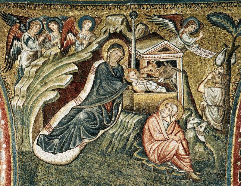 A Roma, nell’abside di Santa Maria Maggiore, un bellissimo mosaico composto alla fine del sec. XIII da Jacopo Torriti, rappresenta una Natività ispirata al presepe di Arnolfo di Cambio. Al centro della scena, Maria depone Gesù nella mangiatoia. Con una particolarità che salta all’occhio: la mangiatoia ha la forma di una tomba marmorea. Gesù che nasce assume la nostra condizione umana per condividerla completamente, fino alla morte. Ma il sepolcro non riesce ad inghiottire il Figlio di Dio. La culla vincerà sulla tomba, ed è la tomba che si trasformerà in culla. Questo mi pare il messaggio più profondo del Natale.