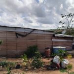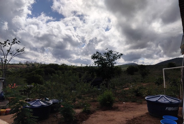 Poi, parlando con Nelza, ho scoperto che vicino all’accampamento, c’è una açude (piccola sorgente) e una pompa che pompava acqua nella cisterna della casa del fazendeiro, per garantire acqua alla sua casa; siamo andati a vedere, io, Nelza e due signori accampati, per rendermi conto della situazione. In effetti c’è questa pozza di acqua, non molto limpida, direi ‘barrenta’ (con molto fango), la pompa mi sembra molto vecchia e ferma da molto tempo, e i tubi che portavano l’acqua alla casa del fazendeiro, rotti in molti punti; tornando, abbiamo anche visto una cisterna intermedia, posta tra la pompa e la casa, adesso secca e crepata, e poi la grande cisterna posta al fianco della casa, anche questa vuota e forse in qualche punto crepata. Anche in questo caso, c’è bisogno di pensare come potere utilizzare cose che sono già presenti, e come potere recuperare qualcosa a beneficio delle famiglie presenti nell’accampamento; la fatica, mi sembra di capire, è pensare insieme, formare sempre più una coesione di intenti per camminare insieme, e avere obiettivi comuni e condivisi. Ancora una volta però, si capiscono queste dinamiche vivendo in mezzo a loro, stando con loro, dando tempo e investendo tempo, per potere avere una visione che non sia solo dettata dal “mi sembra che…” ma dall’avere messo le mani in pasta. Queste sono delle periferie, geografiche, perché fuori dai centri abitati, ma anche esistenziali, perché coinvolgono delle persone che tentano di migliorare la propria vita e la vita dei loro figli.