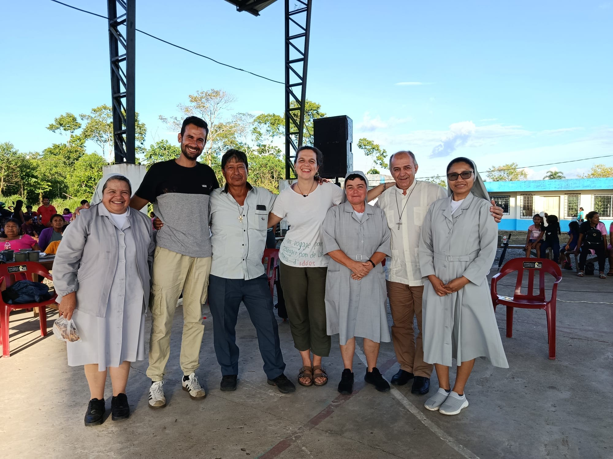 Le parole ancora escono confuse provando a raccogliere quanto vissuto ma riecheggiano in noi le tante cose apprese fin da subito e le tante difficoltà iniziali legate alla necessità di cambiare punto di vista. Sì, perché in Amazzonia ti rendi subito conto che il “nostro” modo di fare le cose non è esattamente il più logico e utile. Abbiamo dovuto imparare a come vestirci per sopravvivere agli insetti, ad accettare i tempi della natura (anche a costo di annullare all’ultimo una riunione a causa di un temporale improvviso), ad attendere e rispettare i tempi dell’altro che, non necessariamente, sono i tuoi perché è più importante arrivarci insieme piuttosto che arrivare prima. Abbiamo imparato l’importanza di dedicarsi il tempo a vicenda, anche quando sembra che non ce ne sia bisogno e dell’importanza di condividere sempre un pasto durante una riunione. Abbiamo imparato a rallentare anche quando questo, al nostro corpo abituato a correre, costava non poca fatica, e quanta difficoltà ora a rientrare in una quotidianità tanto affannata. Una vita vissuta con ritmi più lenti, ritmi che ci hanno davvero fatto sperimentare un vivere più umano, ossia che rispetta davvero i tempi e le modalità di ciascuno. Un cambio di prospettiva che mette in discussione ma che apre gli orizzonti e il cuore. Un vivere la Fede cristiana a partire dalla quotidianità, dai piccoli gesti e attenzioni che caratterizzano ogni giornata, un vedere Gesù fatto uomo davvero nel nostro ‘cada día’ senza doverlo andare a cercare ma che si manifesta in un migrante della Mensa 5 Panes o in un bimbo della Ludoteca di Maskani Wasi che ti corre incontro. Ogni sera, durante il nostro momento di raccoglimento nella cappelletta di casa, era bello stupirsi di come il Vangelo ci avesse parlato con esempi reali della nostra quotidianità, senza forzature ma con la forza di una vita che si percepisce Viva e Vera anche con la sua parte di difficoltà e brutture che non era possibile ignorare.