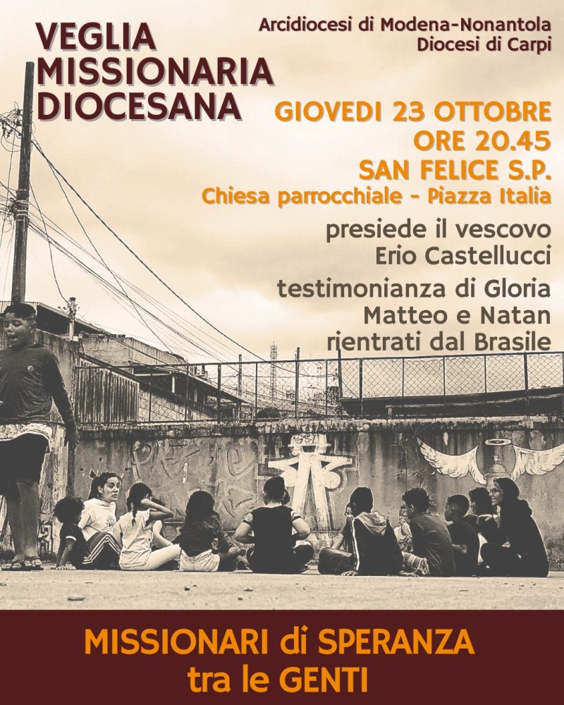 “Missionari di speranza tra le genti” è il messaggio, scritto da papa Francesco, per la 49esima Giornata Missionaria Mondiale. Questo titolo ci rimanda all’anno giubilare che stiamo vivendo e richiama ai singoli cristiani e alla Chiesa, comunità dei battezzati, la vocazione fondamentale di essere, sulle orme di Cristo, messaggeri e costruttori della speranza. Il tempo che viviamo rischia di essere privo di speranza visti gli … Continua a leggere Ottobre missionario »