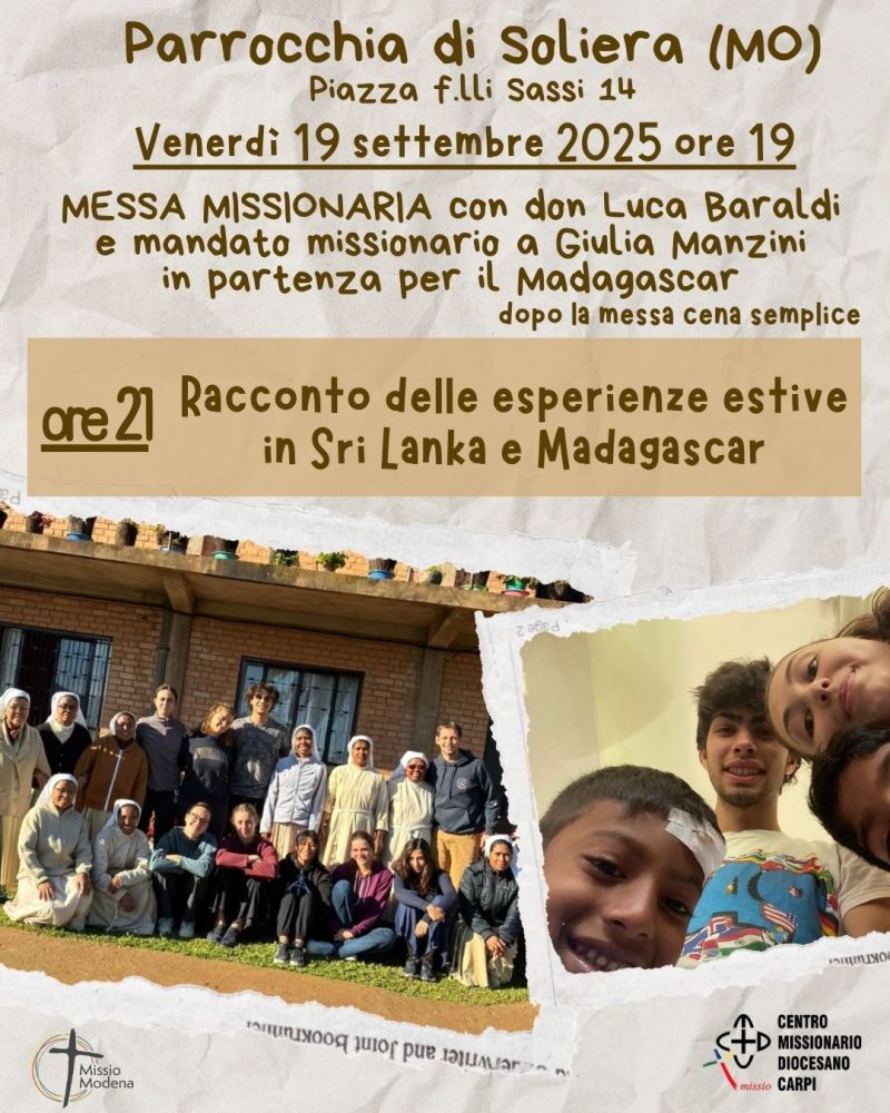 Si è svolta il 12 Maggio la messa missionaria di Maggio2025. Di seguito, l’omelia di don Luca Baraldi ecco alcune testimonianze dell’incontro con don Luca Baraldi e don Gabriele Burani Ecco alcune foto della serata