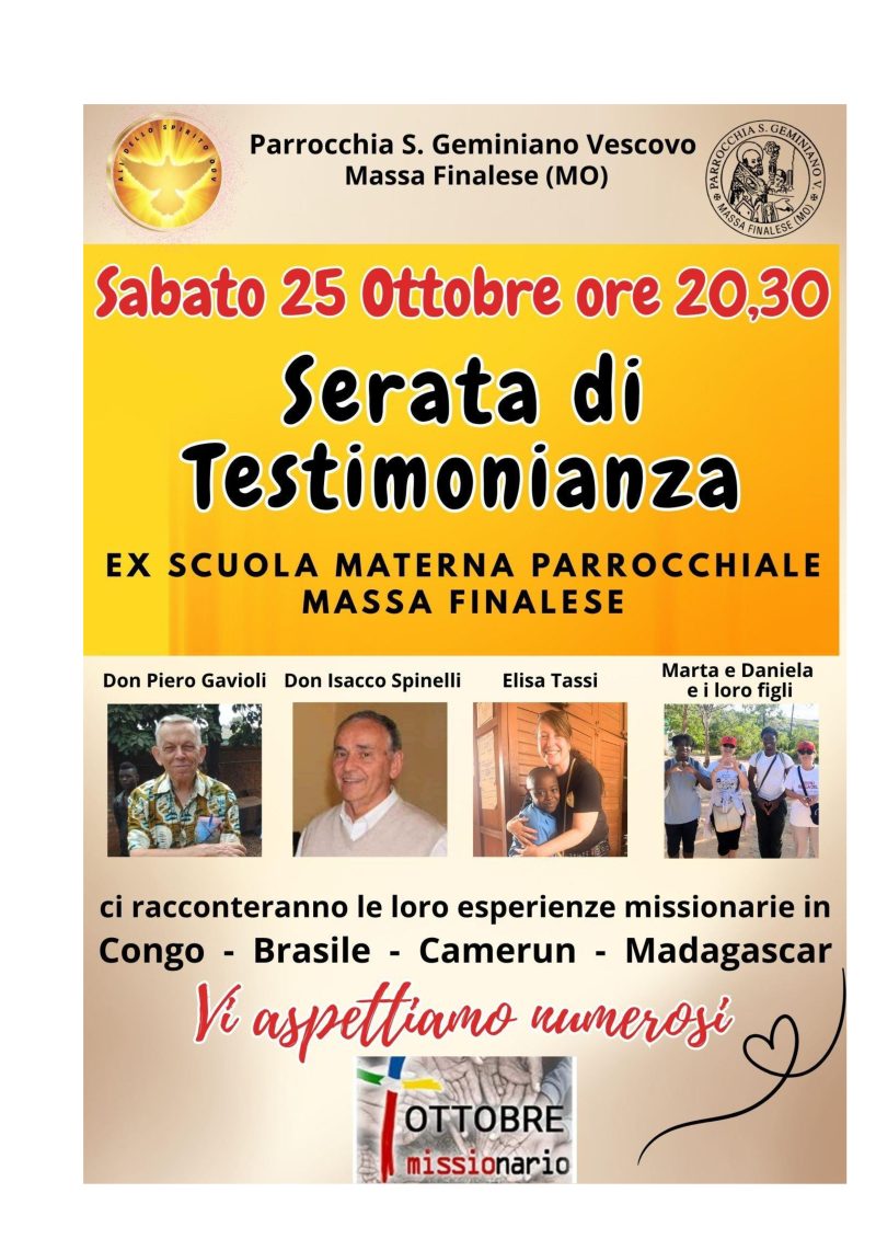 Serata di Testimonianza (esperienze missionarie in Congo-Brasile-Camerun-Madagascar)